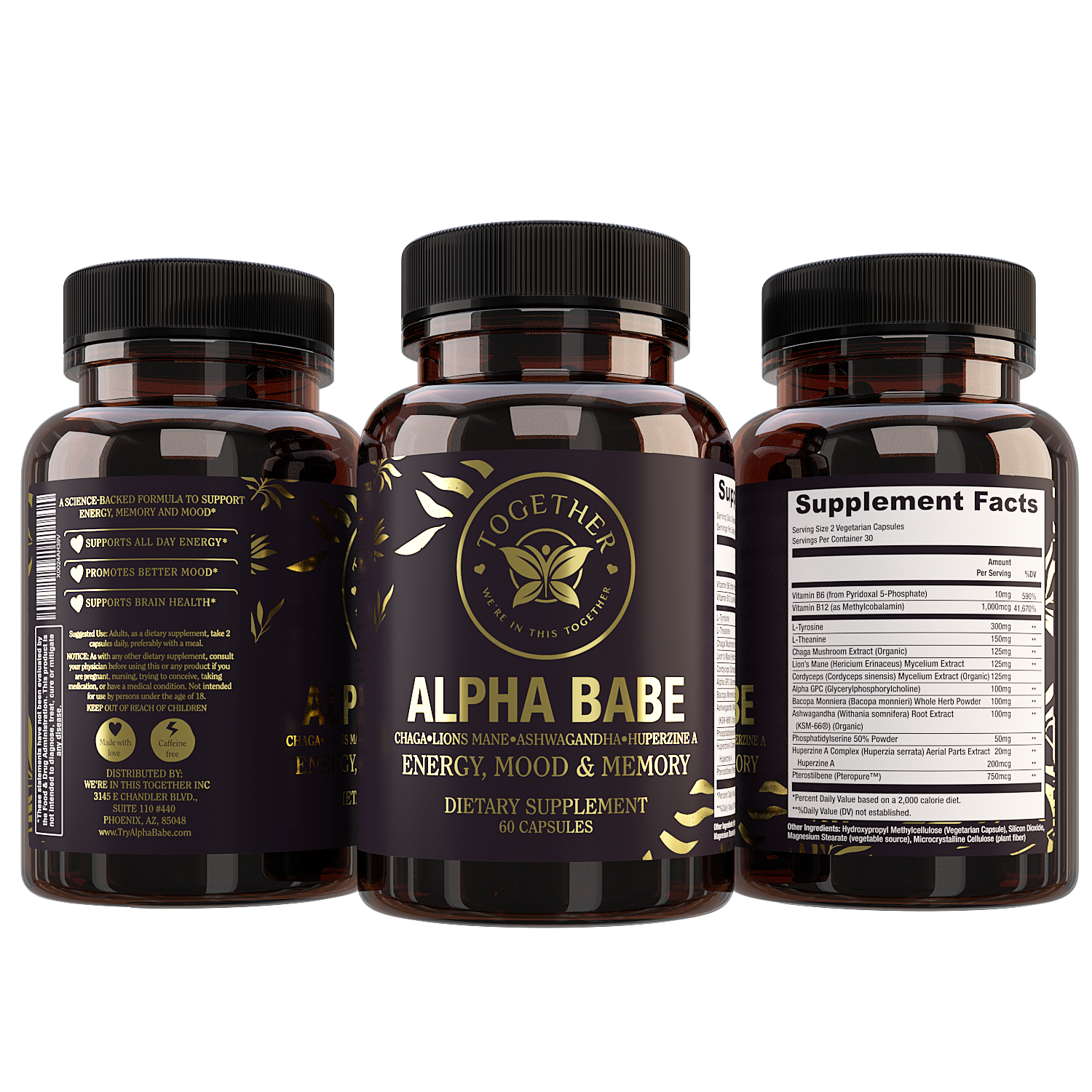 Alpha Babe was designed by taking into account key neural pathways and processes. It contains nootropic compounds, neuro-vitamins, choline donors, and herbal adaptogens to promote clear-headed concentration.